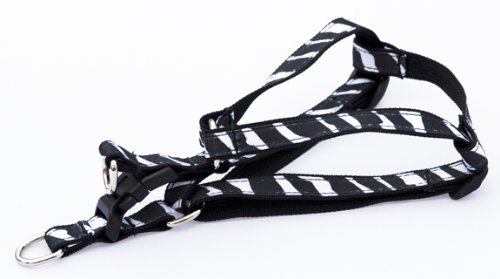 - Xsmall Black/White Zebra Dog Harness: 1/2" wide, Adjusts 8 - 16".